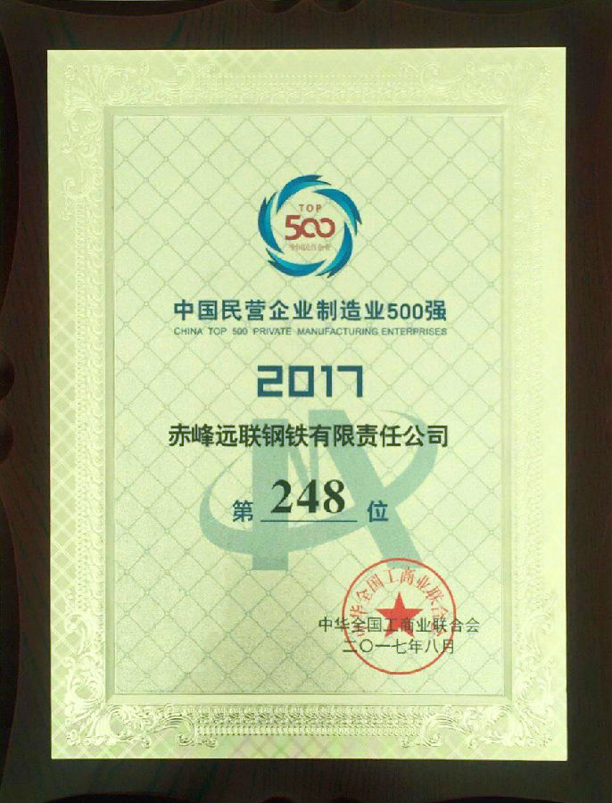 2017年8月,公司被中國工商聯(lián)評為“中國民營企業(yè)500強(qiáng)第431位”