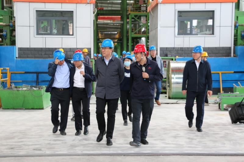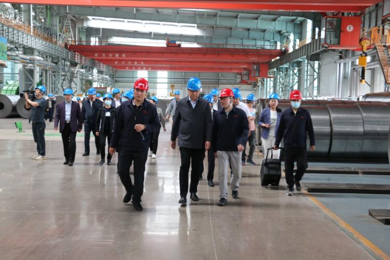 5月21日上午,觀摩團(tuán)一行在市委常委、統(tǒng)戰(zhàn)部部長(zhǎng)孟和巴特爾的帶領(lǐng)下來(lái)到我公司。公司總經(jīng)理佟國(guó)山、黨委書記劉欣、黨委副書記李曉杰在現(xiàn)場(chǎng)迎接,并陪同觀摩團(tuán)參觀了公司年產(chǎn)200萬(wàn)噸冷軋鍍鋅一期項(xiàng)目。劉欣書記代表公司詳細(xì)介紹了該項(xiàng)目的生產(chǎn)工藝流程,讓觀摩團(tuán)成員了解了黑色的熱軋帶鋼蛻變?yōu)楣饬恋腻冧\帶鋼的過(guò)程。